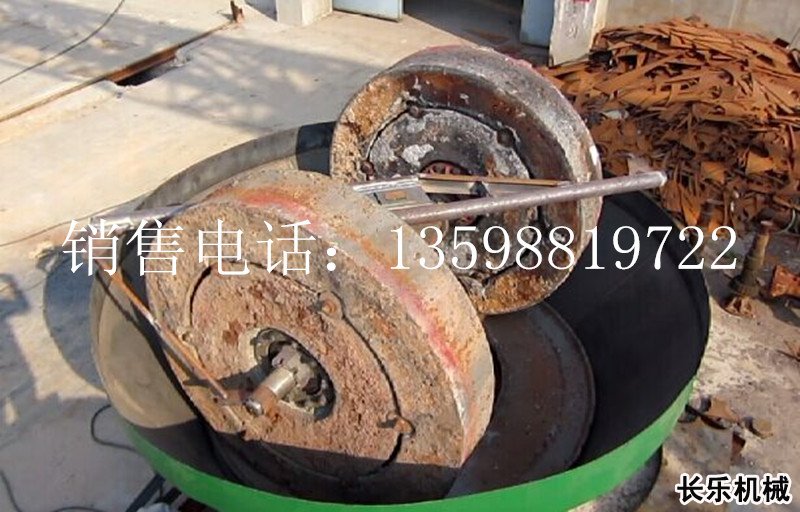電碾子的動力是電機經過三角皮帶傳動給變速箱,再由變速箱帶動碾磙,從而使碾磙按順時針方向運轉。水盆內原料隨著碾磙運轉時,隨著碾磙的轉動,從而達到均勻混合目的。同時原料隨著碾磙和碾盤磨擦使原料的攪拌——碾壓——破碎——碾壓反復進行后達到一定的細度后隨著水排出,達到選礦的目的.